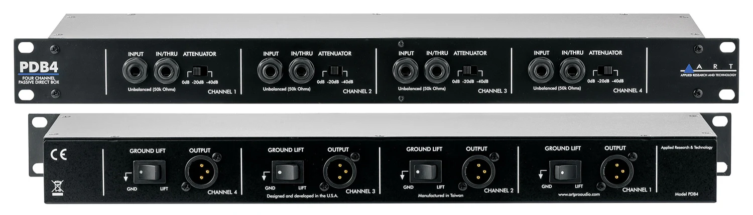 Electric guitar and bass pick-up output signals, keyboards and line level signals, DJ console output signals, speaker level signals. However you decide to use it, we're sure you'll find the ART PDB4 Four Channel Passive Direct Box to be an indispensable addition to your audio equipment arsenal.